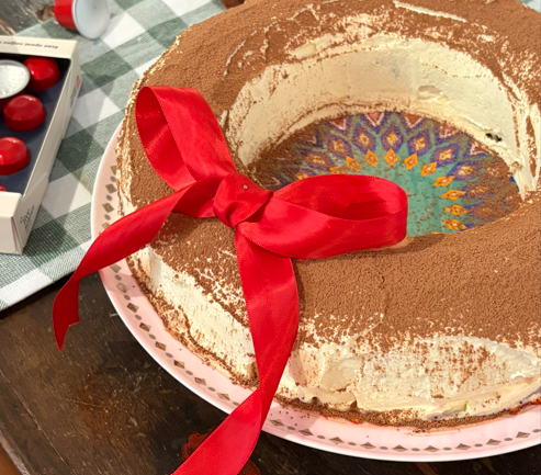 - Using a sieve, cover with a light layer of cocoa powder, then decorate with a ribbon or fresh fruit.