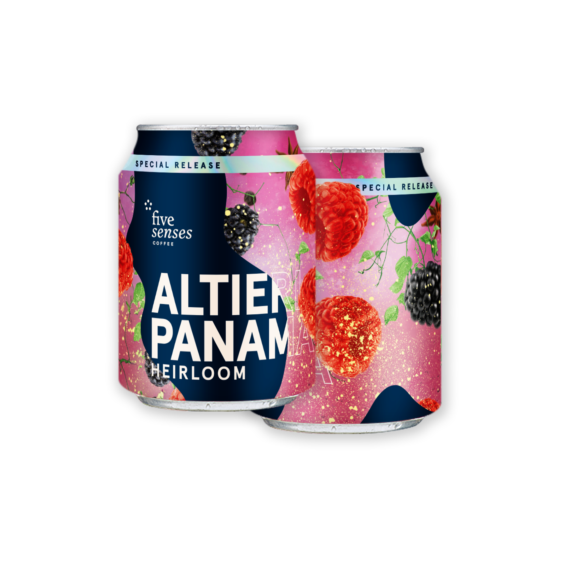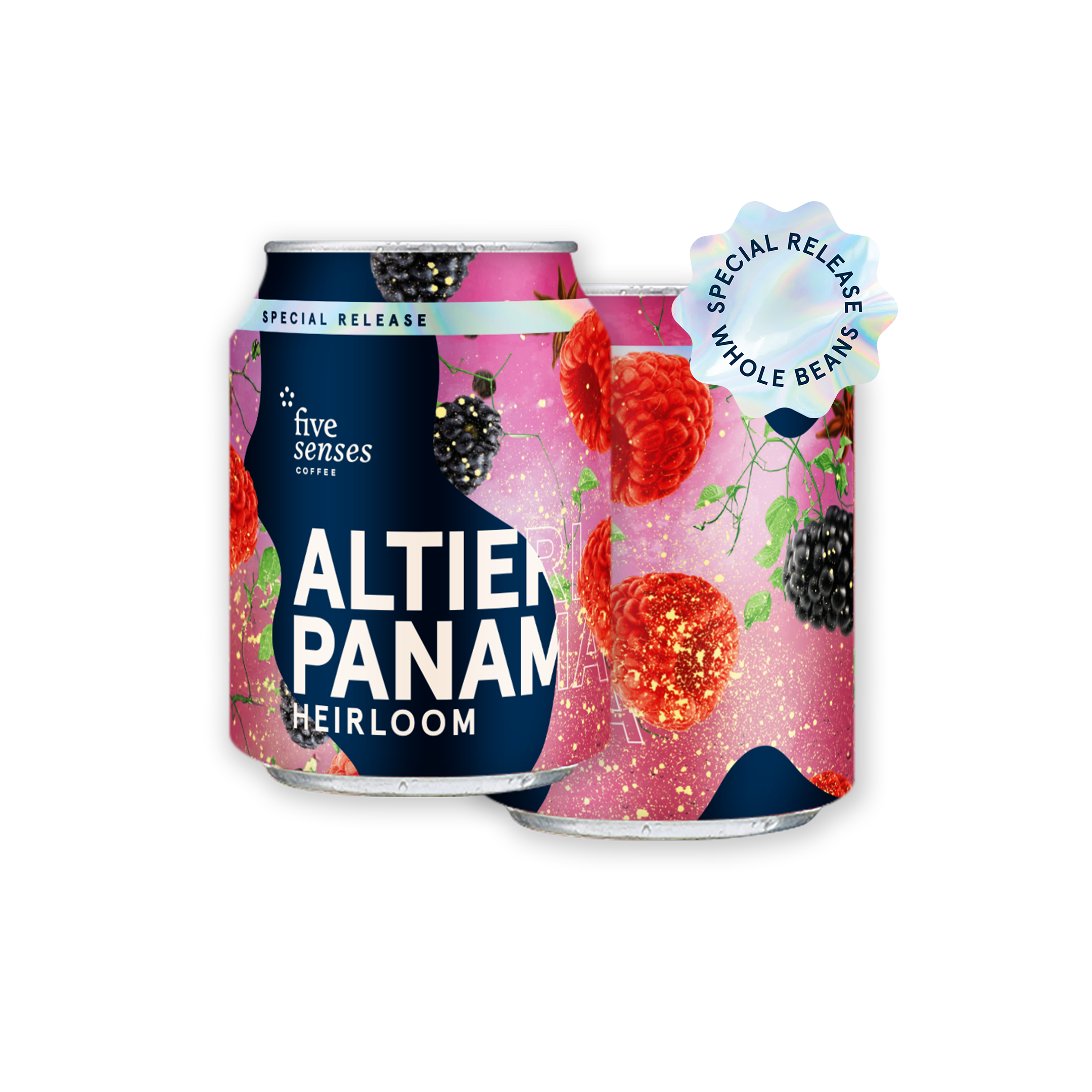 Five Senses has collaborated with Lost Origin Coffee Lab x Altieri Estate to bring you a seriously special release of whole coffee beans packaged in beautiful 100g cans this Christmas. Pushing the boundaries of coffee fermentation, Lost Origin Coffee Lab has used traditional beer brewing methods to create something innovative and unique. This de-pulped Panama Heirloom from Altieri Estate inoculated with Saison yeast and lactobacillus plantarum, delivers a truly unforgettable flavour profile of sparkling natural wine, forest berries & Christmas spices. Nelson Sauvin hops from New Zealand were added to stabilise the pH levels and extend the fermentation. The award-winning varietal was cultivated on the eastern slopes of the Barú Volcano, surrounded by the virgin cloud forests of the Barú National Park in Boquete, Panama.