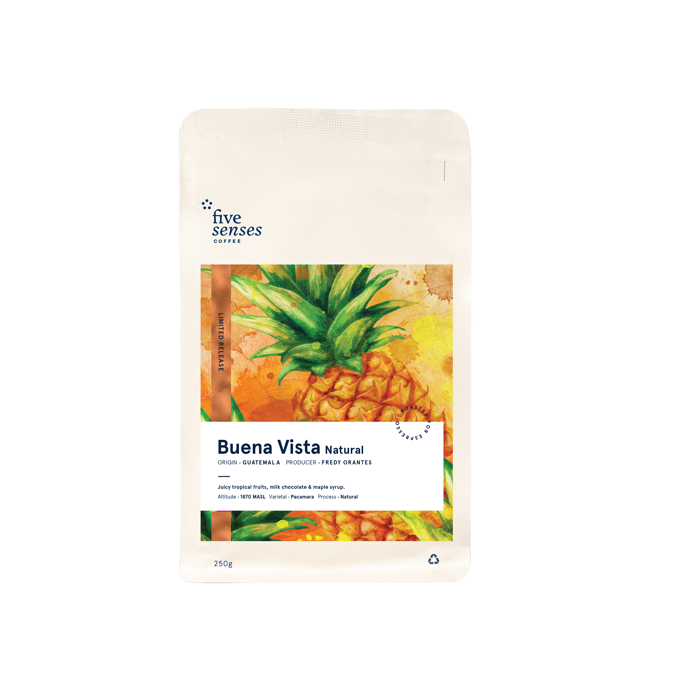 With sustainbility at the forefront of his production, Fredy Orantes has meticulous attention to detail resulting in coffee excellence. Fredy Orantes is a dedicated coffee grower from Santa Rosa, who is celebrated for his unwavering commitment to excellence. His farm, Buena Vista Estate, is aptly named for its stunning views across the valley toward Santa Rosa. Fredy upholds the highest standards in the field and during harvest, ensuring exceptional coffee quality. Sustainbility is at the heart of his work, with meticulous attention to picking, processing and record-keeping. His unfenced farm fosters a thriving ecosystem of native wildlife and diverse flora, enriched by composted organic materials.