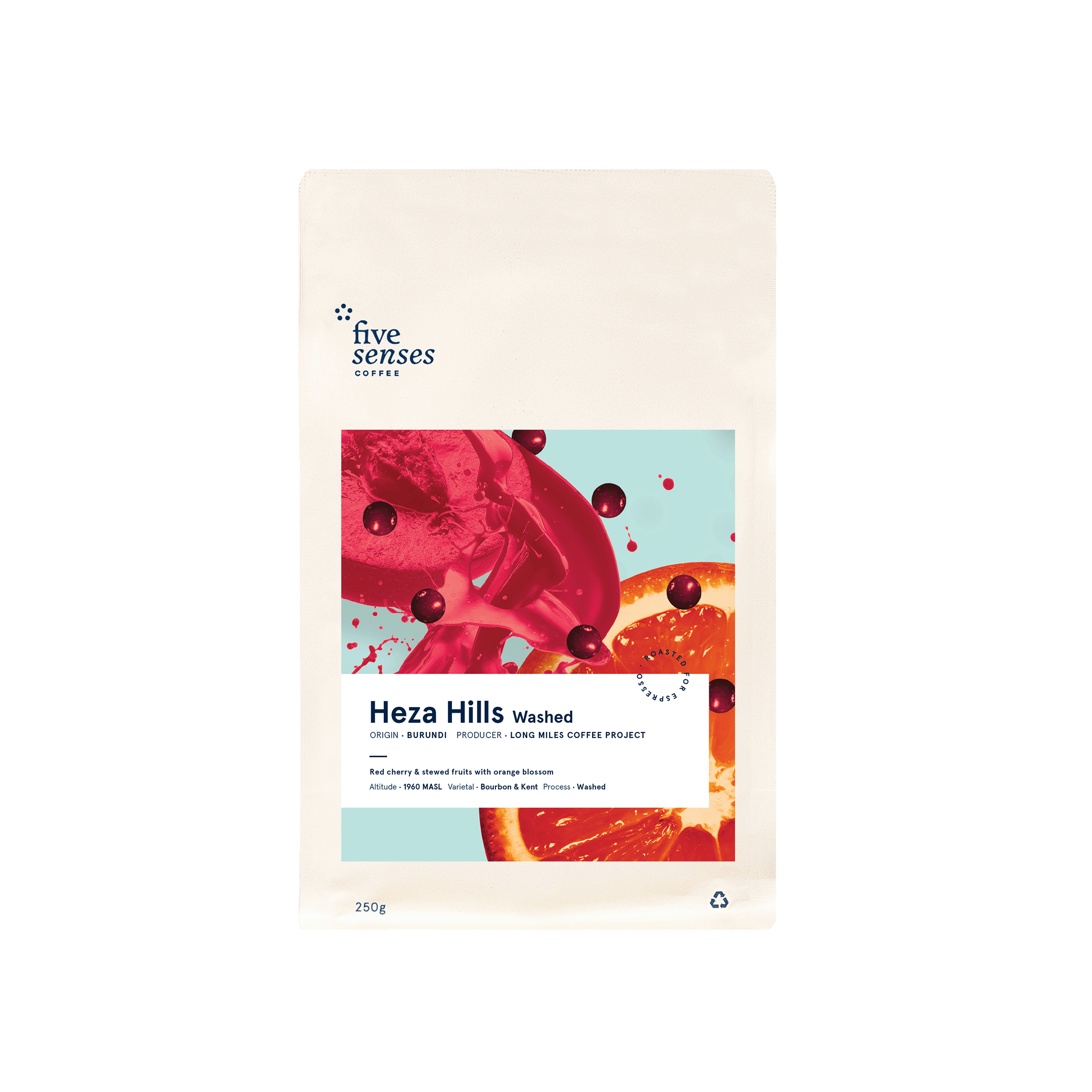 This collaborative effort between Heza Washing Station and local smallholder farmers is part of a relationship we’ve nurtured with Long Miles Coffee in Burundi since 2015. From the start, our shared goal has been to source exceptional coffee while supporting meaningful, community-driven impact across the hills of northern Burundi. Heza means ‘beautiful place’, and with sweeping views of the East African sky, the station lives up to its name. Built into a cliff at the foot of Gitwe Hill, Heza is remote—but surrounded by a resilient farming community. From its vantage point, you can see the Rwandan border and the edge of Burundi’s last indigenous rainforest. The station works with farmers across multiple nearby hills, each with unique micro-climates, producing coffees that are as distinct as the land they come from. The ideal growing conditions, combined with careful processing, result in a flavour profile that bursts with red cherry and stewed red fruits, lifted by a delicate touch of orange blossom.