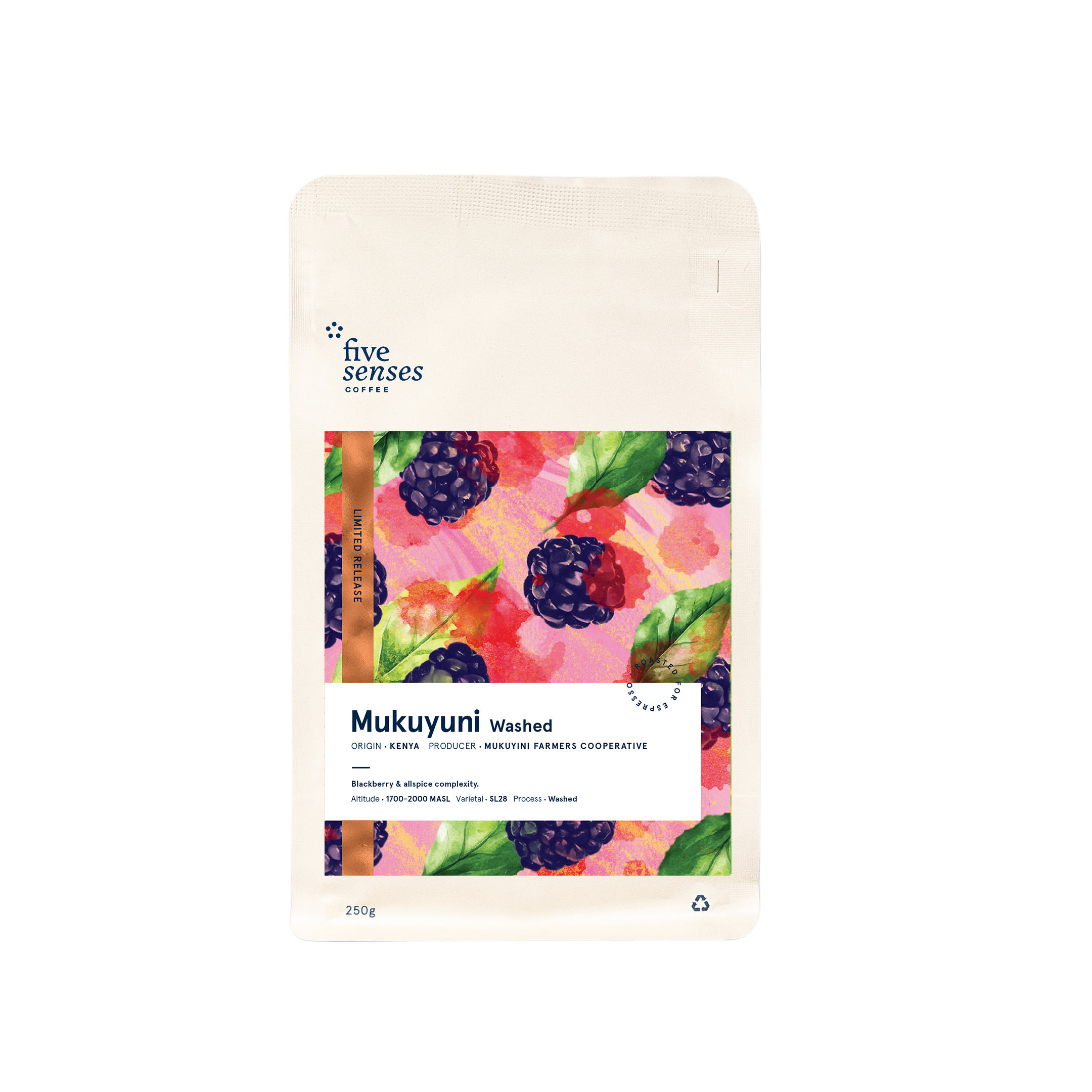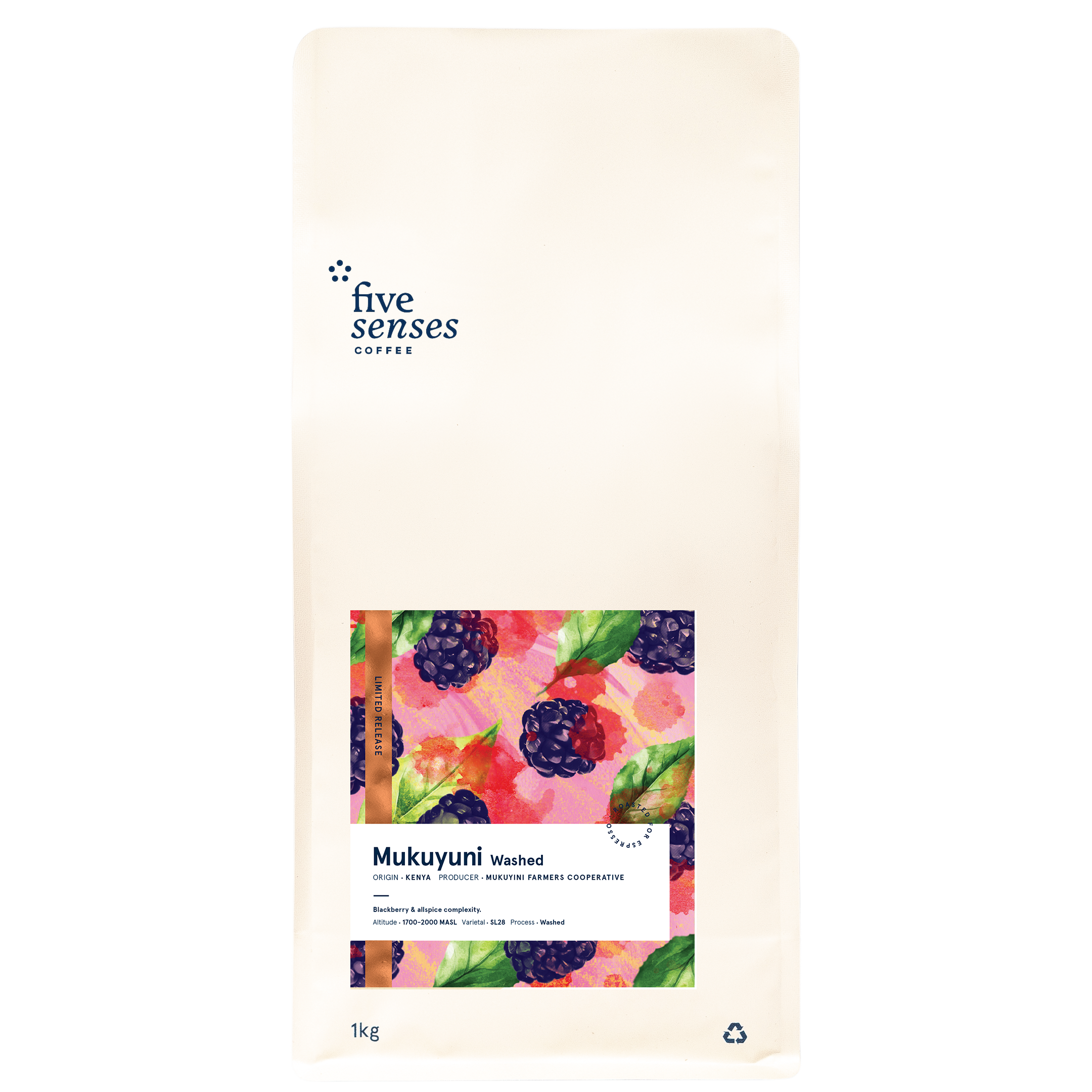 The Mukuyuni Farmers Cooperative Society, located in Machakos County, Kenya, is a shining example of high-quality coffee production and sustainable farming. The cooperative takes its name from the River Mukuyuni, with "Mukuyuni" translating to "next to the giant fig tree" in the local Kamba language, referencing a historical gathering place. This region, in the southeastern part of Kenya, provides ideal conditions for coffee cultivation, with fertile soil and a favourable climate contributing to the exception quality of its beans. Mukuyuni coffee is known for its bright acidity, complex flavour and well-balanced profile. The beans often exhibit vibrant citrus and berry notes, complemented by a smooth, lingering finish. Farmers in the cooperative prioritise organic farming, Fairtrade certification, and continuous improvements to their processes. They maintain clean processing facilities, use digital scales for precision, and invest in advanced pulping equipment to ensure consistency and high quality. Additionally, their commitment to sustainable agriculture includes crop diversification, incorporating figs, flowers, honey, cattle feed and poultry farming to support their livelihoods.