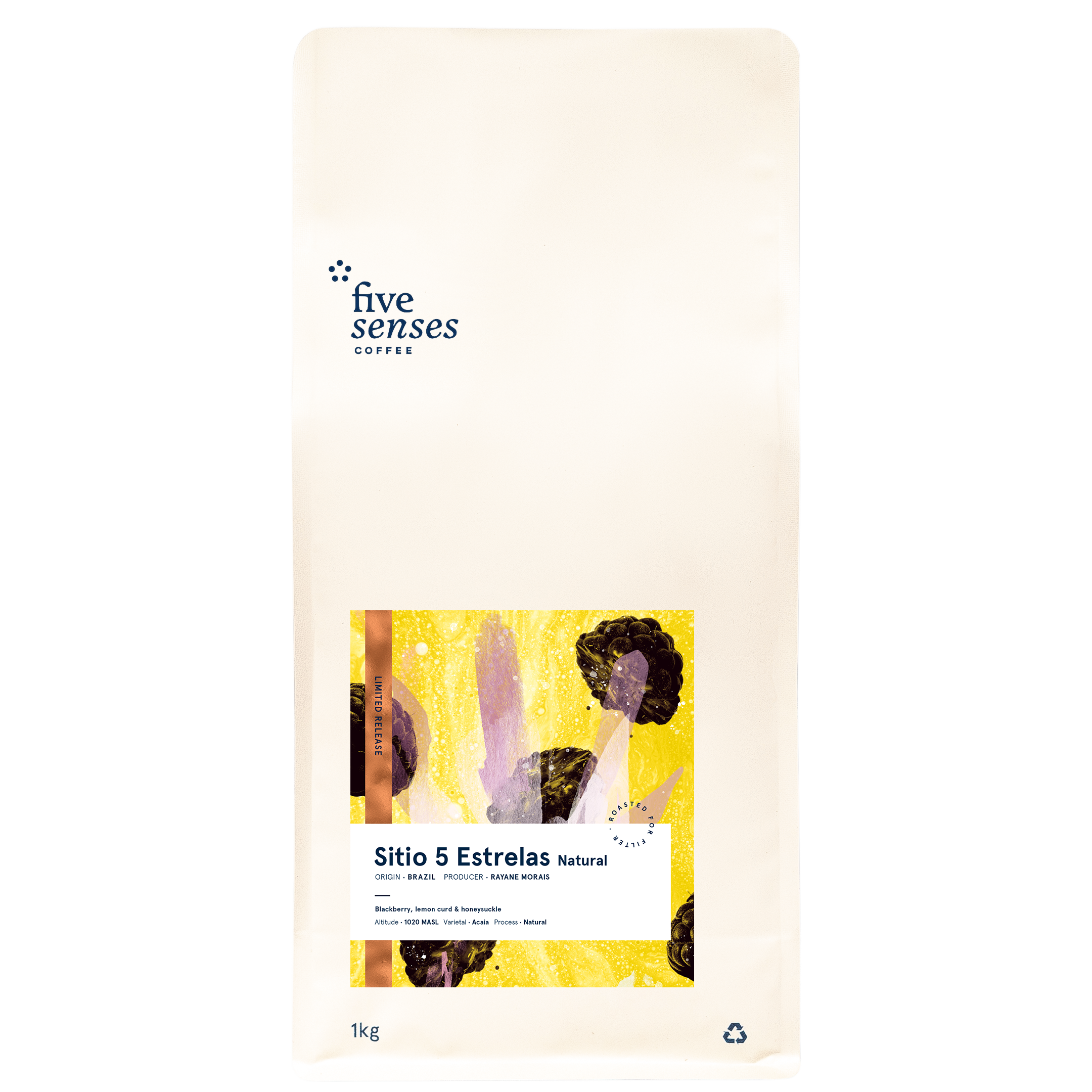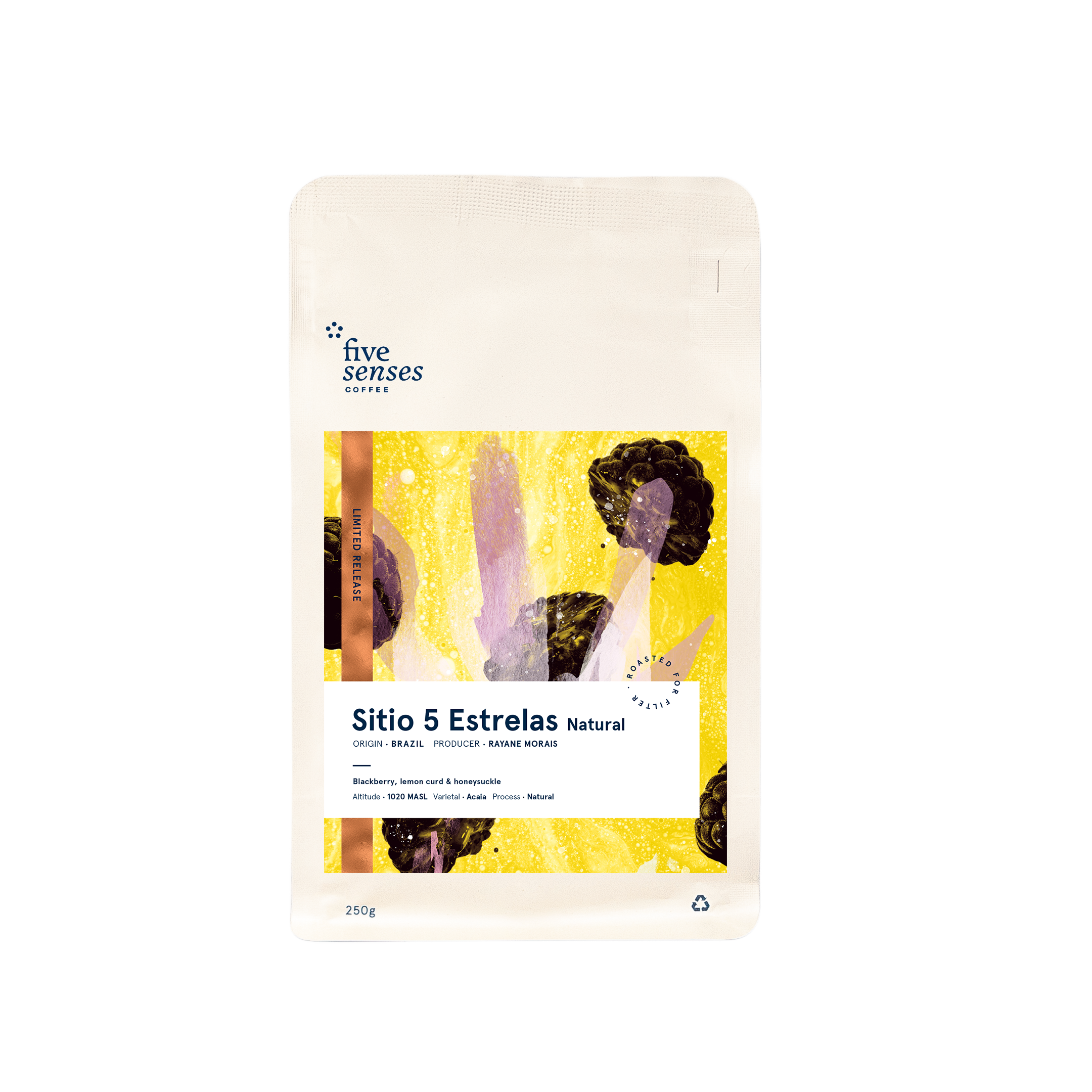 As a third-generation coffee farmer in Brazil, Rayane was born and raised surrounded by coffee. We’re thrilled to share this one of two beautiful Brazil coffees won at the Best SanCup Auction through our longstanding partner SanCoffee. Sítio 5 Estrelas (pronounced Sítio Cinco Estrelas) is a small family-owned farm that has spanned generations. The family’s passion for producing high-quality coffee is more alive than ever with Rayane. Encouraged by her parents and grandparents from a young age, she immersed herself in every aspect of running the family farm. Looking for innovation and improvement for the coffee family business, she studied agronomy and introduced new technology to elevate the production of specialty coffee on the farm. Rayane was part of SanCoffee’s ‘Beyond Borders’ program showcasing incredible smallholder producers in Brazil.
