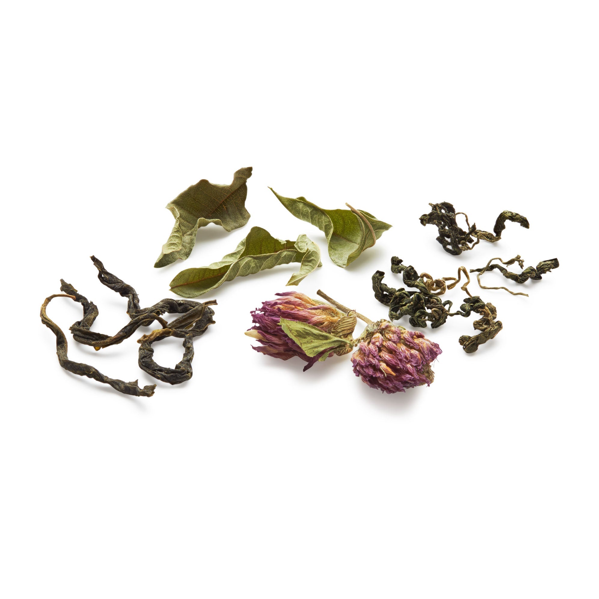 An unforgettable blend of ancient and wild Green Tea Leaves, Red Clover Blossoms, Lemon Verbena, and Gynostemma Vine. Meaningful Green is exceptionally smooth, with floral, lemon, and sweet nut tones, followed by a refreshing and clean finish.