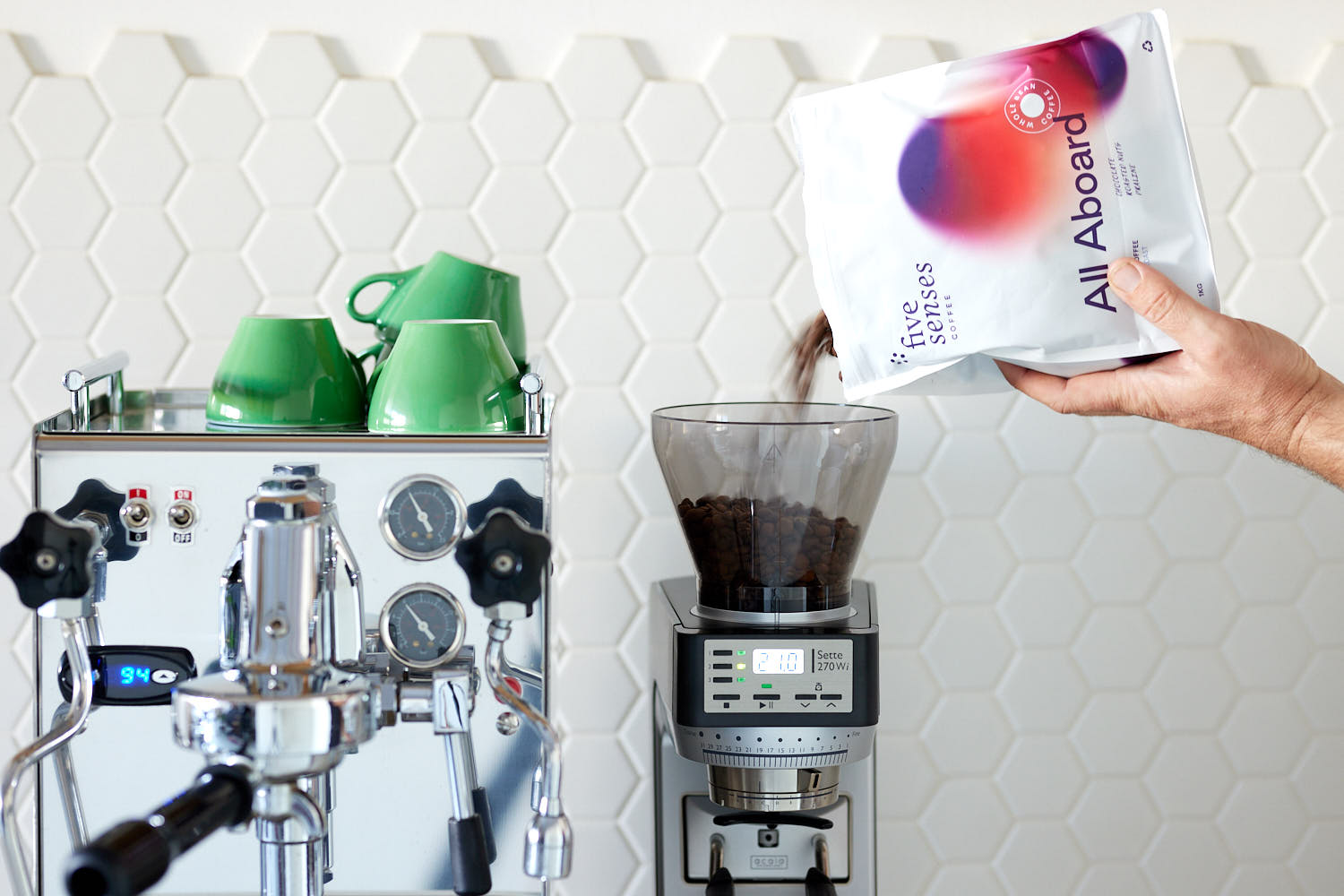Welcome to your new every-day flavour destination! Checking in at all of the milk and dairy alternative coffee highlights, the All Aboard espresso blend is set to become the new crowd favourite. Sourced with the same specialty ethos Five Senses delivers to its leading café customers, each origin in the All Aboard blend is roasted fresh to order, separately. Together, these specialty coffees combine to offer rich and satisfying flavours; chocolate, roasted nuts and praline that hit the mark in flat whites to piccolos, cappuccinos to macchiatos or however you enjoy your coffee!